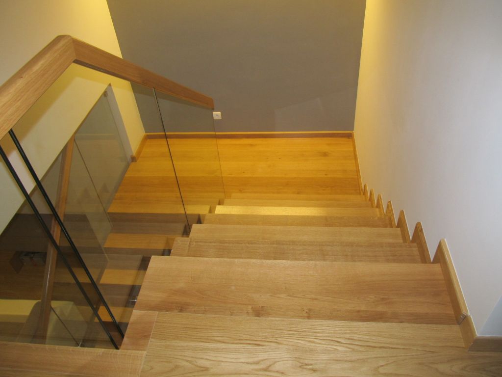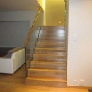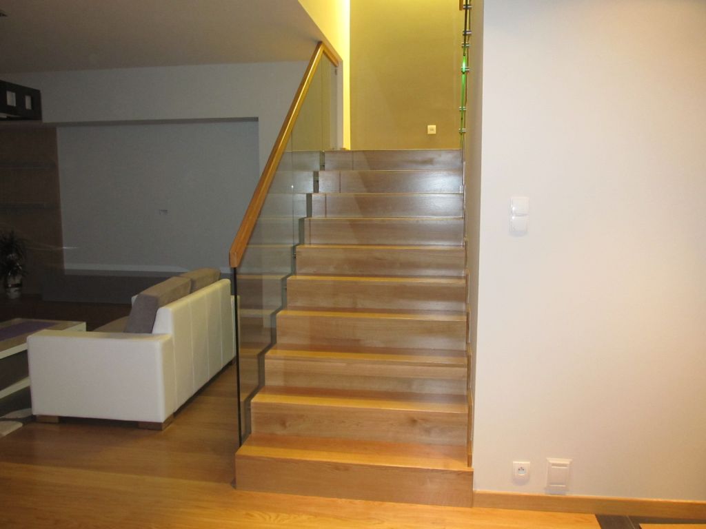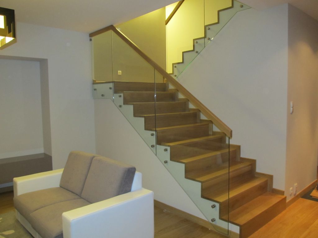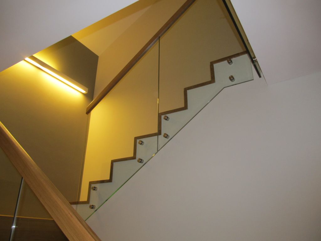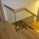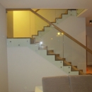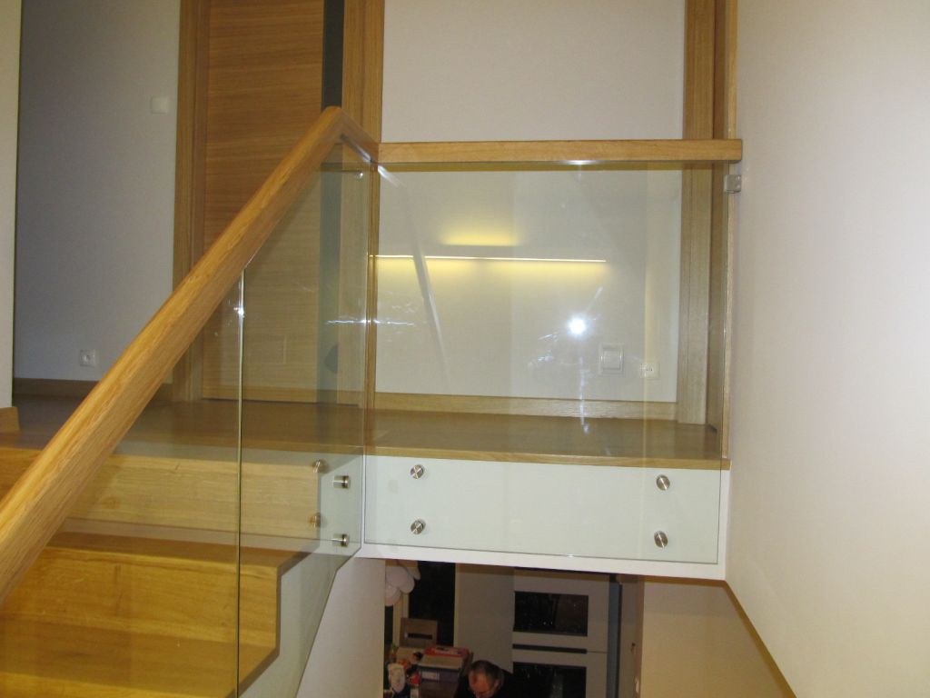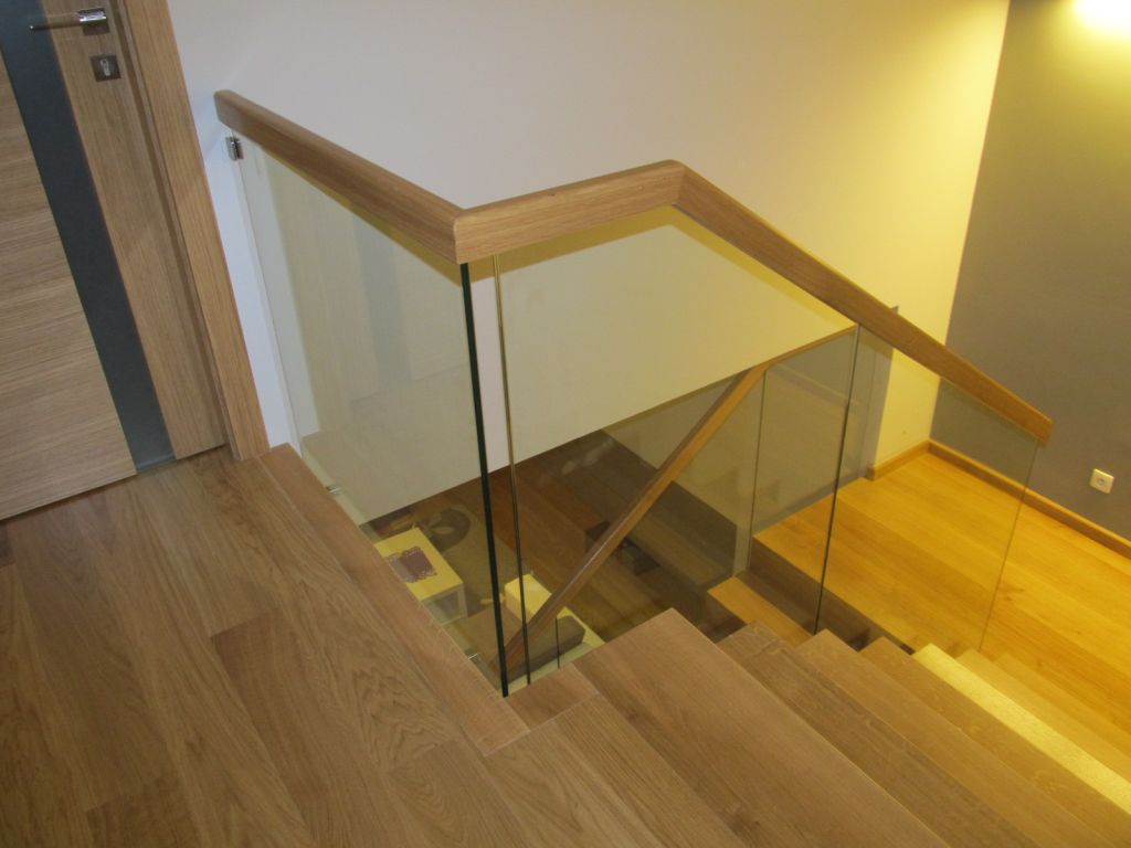 balustrada : szkło hartowane klejone z pochwytem drewnianym.